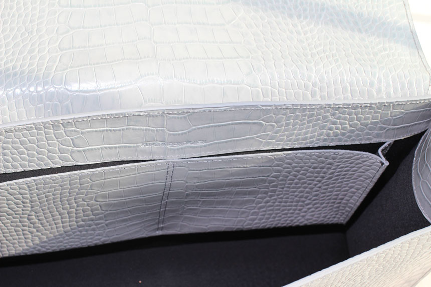 핸드백 뒷면에 수납공간이 있어 실용성과 활용도를 높인 핸드백입니다.