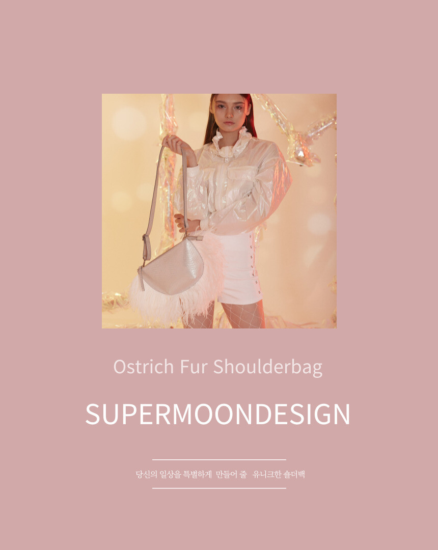 화이트 컬러의 타조 퍼 가 포인트인 크로스백입니다